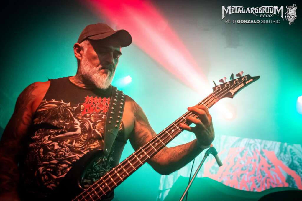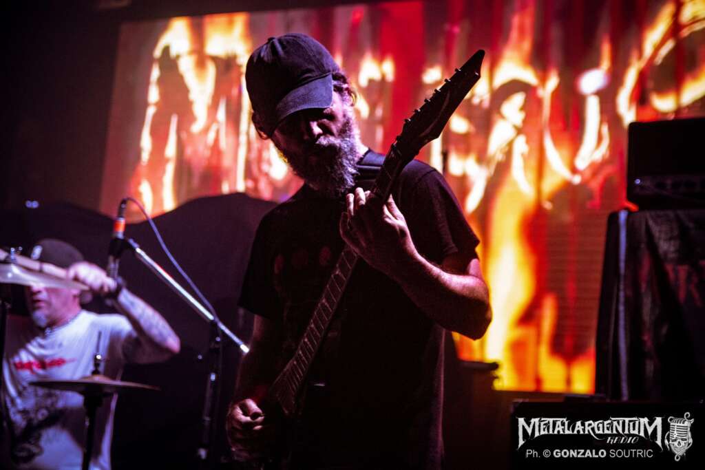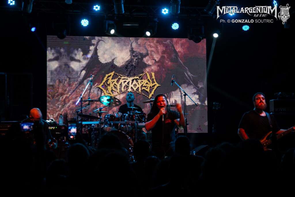 Finalmente, a las 22:30 y tras una larga espera, Cryptopsy salió a escena como un huracán desatado. Lo suyo fue pura brutalidad, con una ejecución impecable y una energía demoledora. Sin embargo, tras el primer tema, Matt McGachy, el carismático vocalista, tuvo que interactuar con el público mientras Flo Mounier, baterista y único miembro original de la banda, solucionaba un inconveniente con uno de sus parches. McGachy, con su voz salida de ultratumba y revoleando su larga cabellera durante todo el show, mantuvo al público encendido.. Temas como “Slit Your Guts“, “Graves of the Fathers” y “Open Face Surgery” desataron la locura entre el público. El cierre con “Phobophile” y “Orgiastic Disembowelment” del mítico “None So Vile” fue simplemente demoledor, dejando a todos exhaustos y satisfechos. Un final brutal para una noche inolvidable de death metal técnico en su máxima expresión.