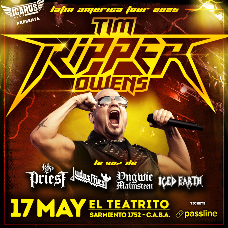 El ex vocalista de Judas Priest y Iced Earth, Tim “Ripper” Owens, se presenta en Buenos Aires el 17 de mayo en El Teatrito, como parte de su gira Latin American Tour 2025. Una noche épica con himnos del heavy metal mundial y su carrera solista.