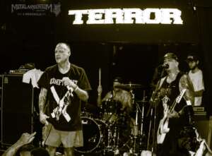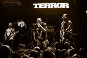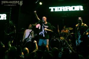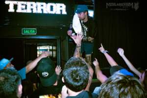 Cuando apareció TERROR, no hubo introducciones largas ni vueltas innecesarias. Scott Vogel agarró el micrófono y el lugar explotó. Desde los primeros acordes ya había gente volando por encima de la multitud. Stage diving constante, circle pits furiosos y un escenario que dejó de ser territorio exclusivo de la banda: el público subía, gritaba líneas enteras y se tiraba de nuevo al caos.