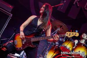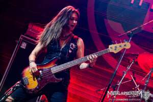 “Glory Road” y “Hate and Love” completaron un tramo central del show que no tuvo un solo momento muerto. La sección rítmica merece una mención especial: Julia Lage, pareja de Richie Kotzen y bajista del proyecto, fue una de las grandes figuras de la noche. Sólida, precisa y con una presencia escénica notable, demostró por qué es mucho más que un acompañamiento. A su lado, Bruno Valverde en batería estuvo sencillamente tremendo —potencia, timing y musicalidad en partes iguales, sosteniendo el peso de todo el show con una madurez que dejó boquiabierto a más de uno.