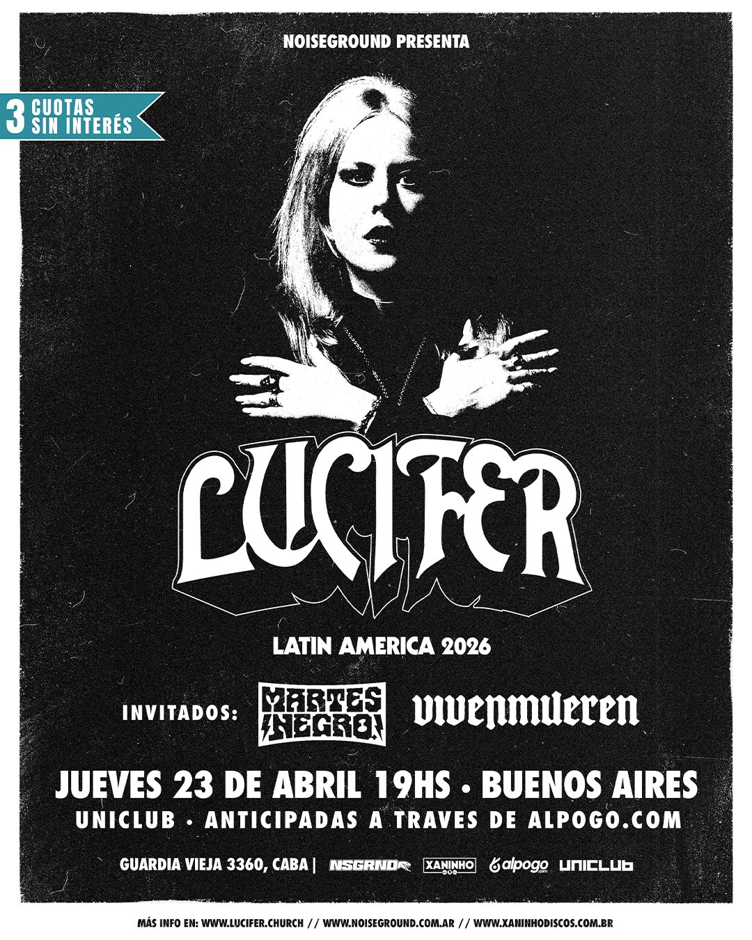 Lucifer volvió por tercera vez y cada visita confirma lo mismo: son una banda que sabe exactamente lo que hace y lo hace con una coherencia que pocas tienen. Uniclub fue el escenario perfecto — íntimo, oscuro, sin distancias. Johanna Platow es una presencia escénica difícil de olvidar. Y si algo quedó claro el 23 de abril, es que no va a pasar mucho tiempo antes de que vuelvan.