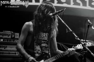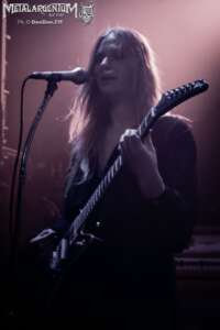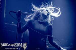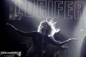 Cuando Johanna Platow tomó el escenario, el Uniclub se transformó. Lucifer no es una banda que necesite grandes producciones para crear atmósfera — la atmósfera la traen puesta. El ocultismo setentoso, la estética de Hammer Horror, el cuero y las tinieblas bien administradas construyen un universo visual tan coherente con su música que cada tema se siente como parte de un ritual mayor.
